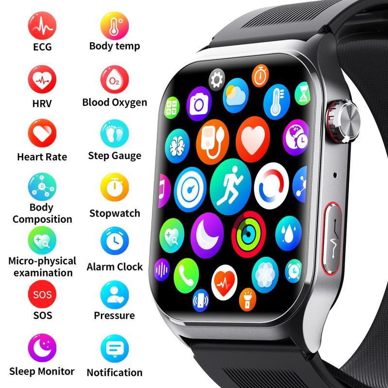 Zaawansowany inteligentny zegarek F520 z pompą powietrzną, ciśnieniem krwi, EKG, tętnem i monitorowaniem snu - 2,1-calowy wyświetlacz IPS, alarm upadku SOS