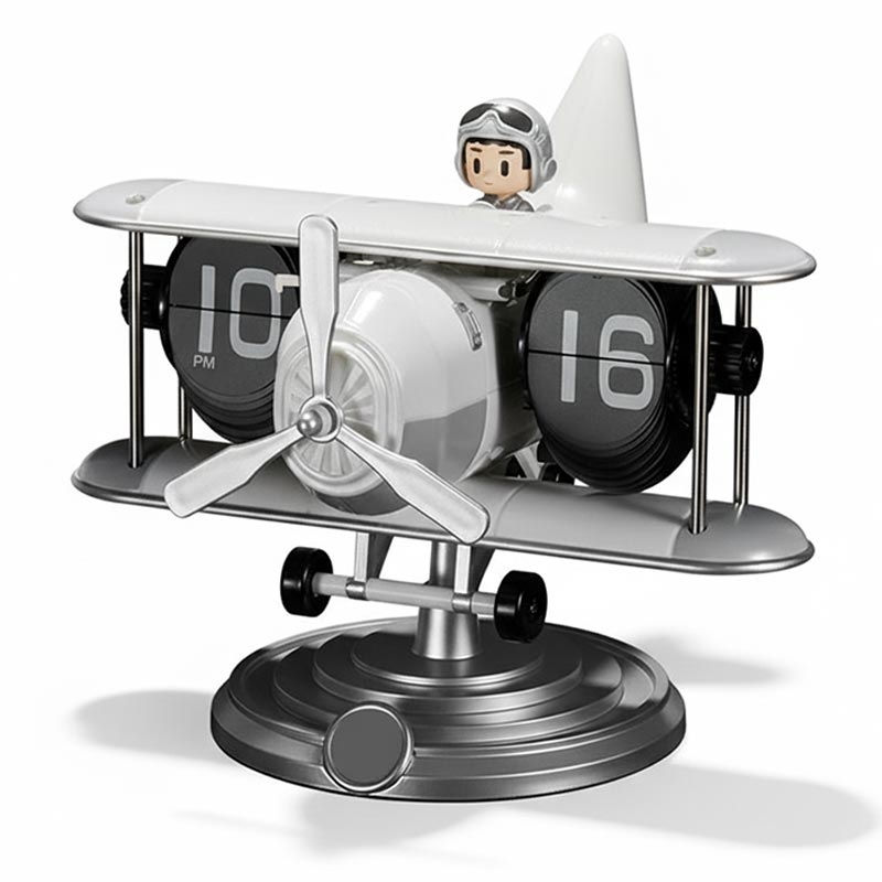 - Nowoczesne zegary z klapką często zawierają fantazyjne kształty, takie jak ten motyw samolotu, aby zachować świeżość i aktualność klasycznej technologii.