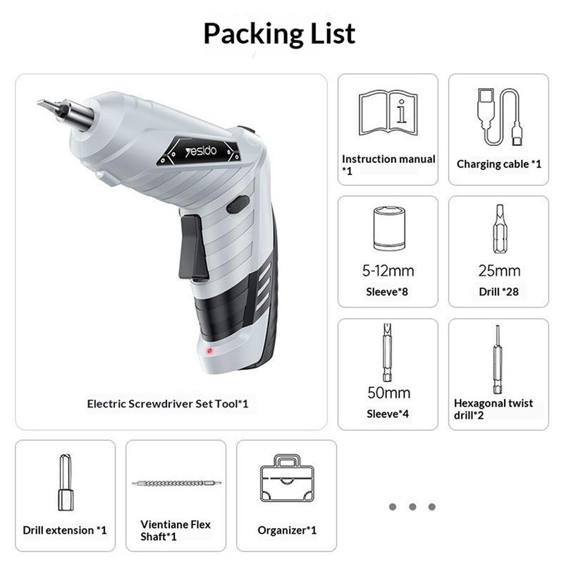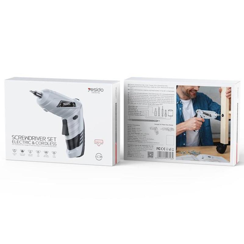 Zestaw akumulatorowej wkrętarki Yesido EC34 - narzędzie naprawcze o podwójnym zastosowaniu (typu prostego i pistoletowego) z oświetleniem LED