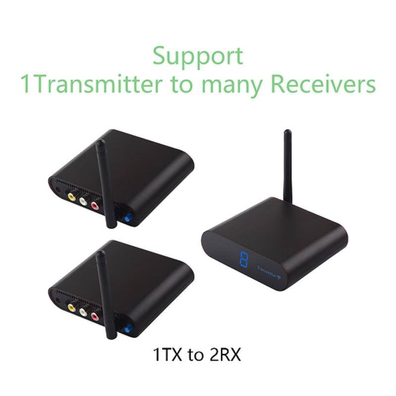 Bezprzewodowy zestaw nadajnika i odbiornika AV Measy AV530 - transmisja sygnału 5.8GHz 300m z wyjściem jeden-dwa