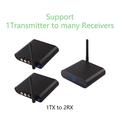 - Wyjście jeden-dwa - jeden nadajnik obsługuje dwa odbiorniki do jednoczesnego odtwarzania na wielu ekranach.