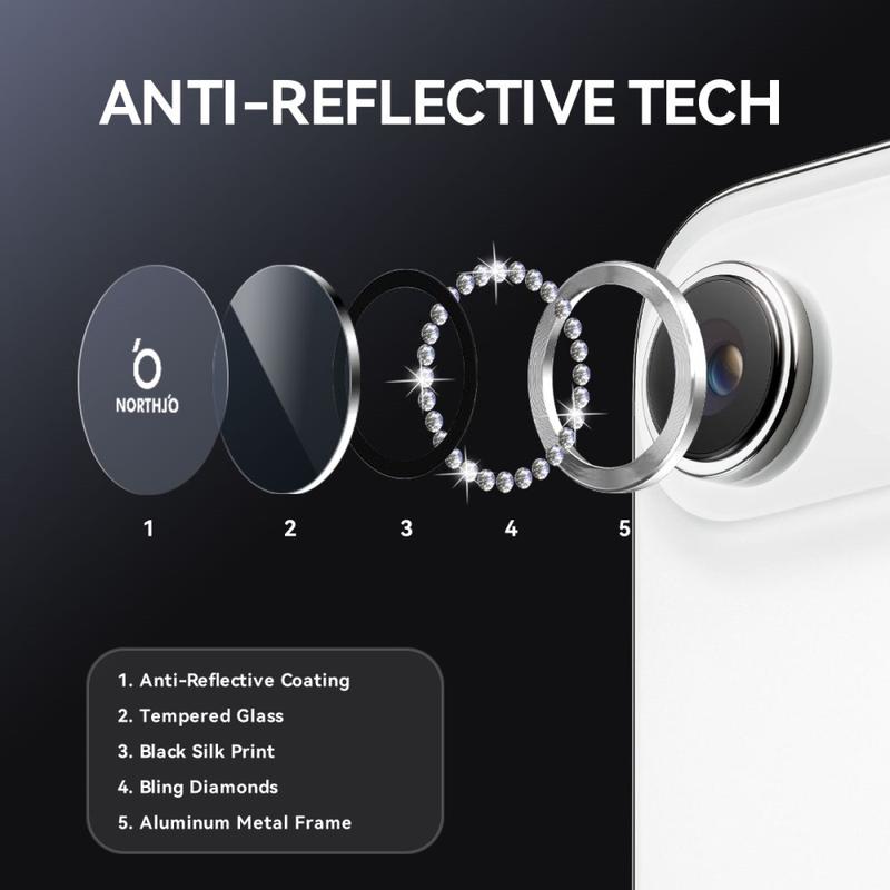 NORTHJO Rhinestone Lens Protector oferuje to, co najlepsze z obu światów - najwyższej jakości blask i wysoką wytrzymałość. Poprawia wygląd telefonu, zachowując profesjonalną przejrzystość zdjęć i codzienną ochronę.