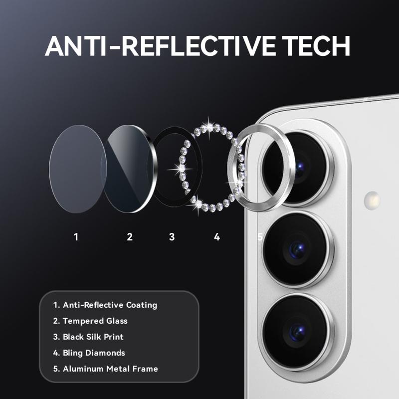 NORTHJO Rhinestone Lens Protector oferuje to, co najlepsze z obu światów - najwyższej jakości blask i wysoką wytrzymałość. Poprawia wygląd telefonu, zachowując profesjonalną przejrzystość zdjęć i codzienną ochronę.