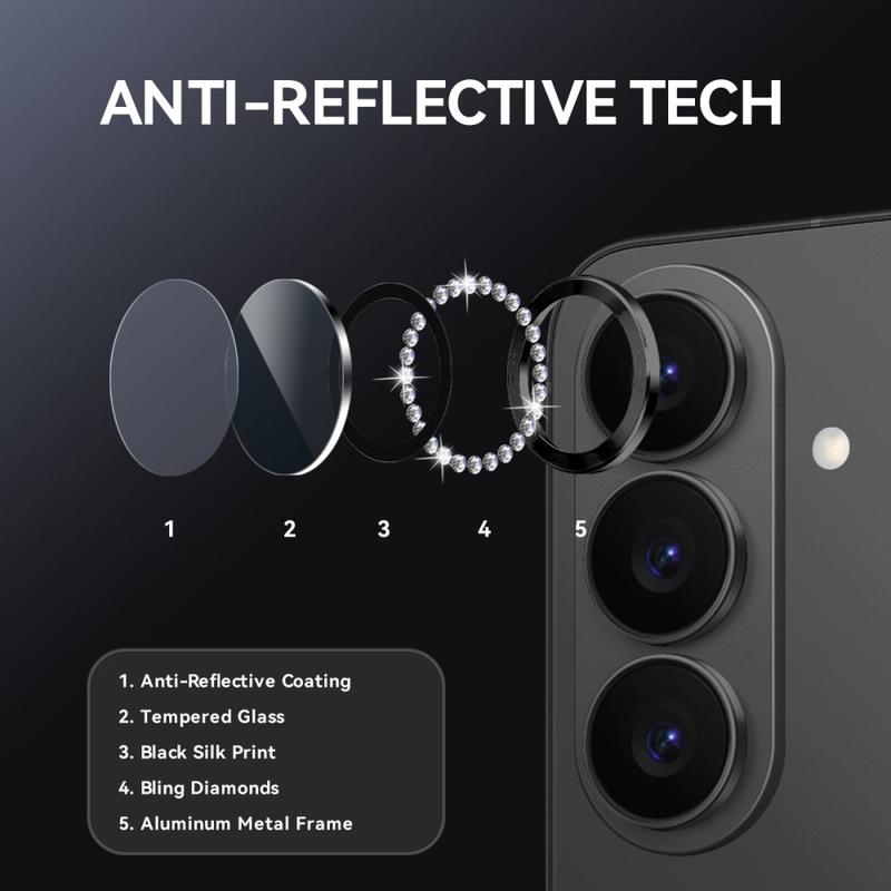 NORTHJO Rhinestone Lens Protector oferuje to, co najlepsze z obu światów - najwyższej jakości blask i wysoką wytrzymałość. Poprawia wygląd telefonu, zachowując profesjonalną przejrzystość zdjęć i codzienną ochronę.