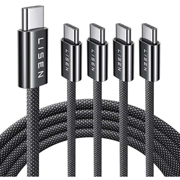 Zestaw kabli Lisen USB-C do USB-C - 60W, 3A, szybkie ładowanie Power Delivery, plecionka nylonowa, różne długości