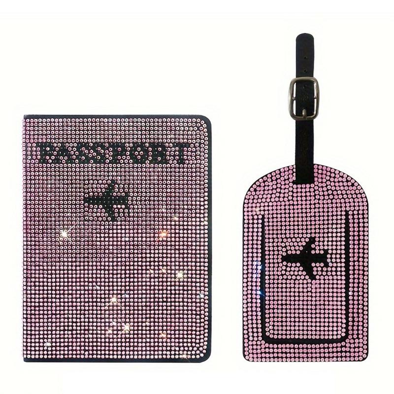 Zestaw przywieszek do bagażu i paszportów z kryształkami górskimi - błyszczący organizer podróżny z poliuretanu