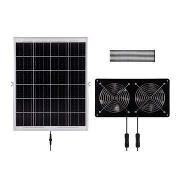 Zadbaj o chłód, świeżość i komfort w schroniskach dla zwierząt dzięki zestawowi wentylatorów wyciągowych o mocy 30W zasilanych energią słoneczną. Zestaw przeznaczony do użytku na zewnątrz działa bezpośrednio w oparciu o światło słoneczne, dzięki czemu można poprawić przepływ powietrza w kurnikach, budach dla psów, klatkach dla królików i małych schroniskach dla zwierząt gospodarskich bez konieczności korzystania z zasilania sieciowego. Monokrystaliczny panel słoneczny zapewnia stabilną moc wyjściową 12 V, a podwójny wentylator zapewnia silną wentylację, pomagając zmniejszyć gromadzenie się ciepła, wilgoć i nieprzyjemne zapachy w cieplejszych miesiącach.
