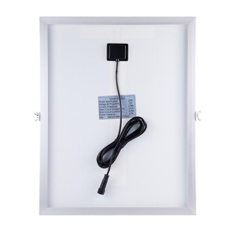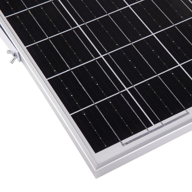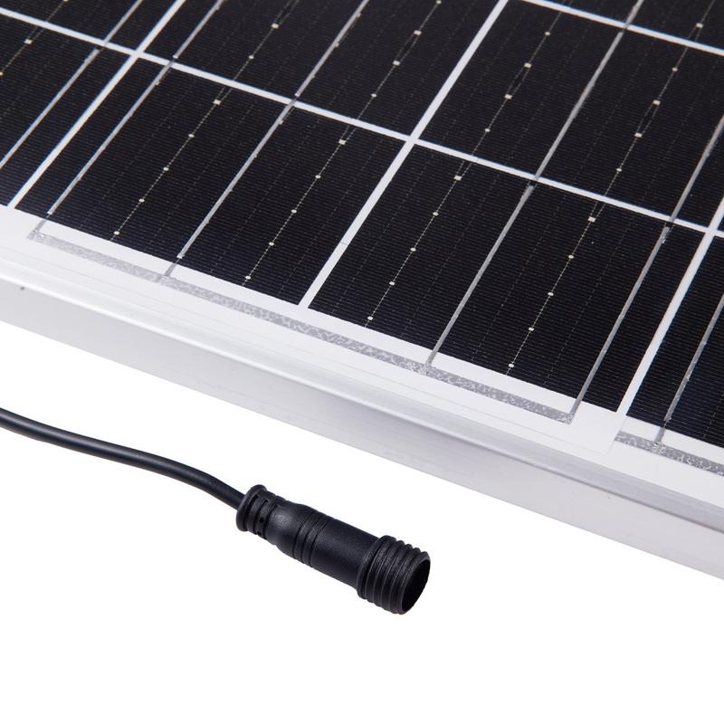 - Wytrzymała konstrukcja panelu słonecznego: szkło hartowane o grubości 3,2 mm + rama ze stopu aluminium (grubość 17 mm)