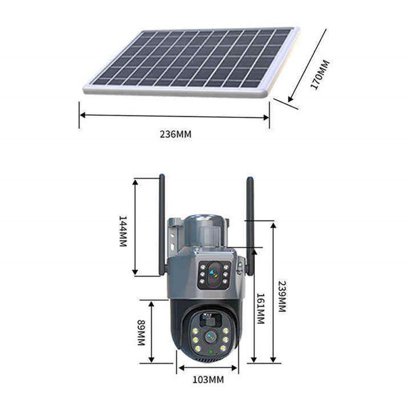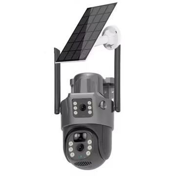 Zewnętrzna kamera monitoringu V380 4G z zasilaniem słonecznym - kamera PTZ z dwoma obiektywami o rozdzielczości 4 MP, pełnokolorowym widzeniem w nocy i wykrywaniem ruchu