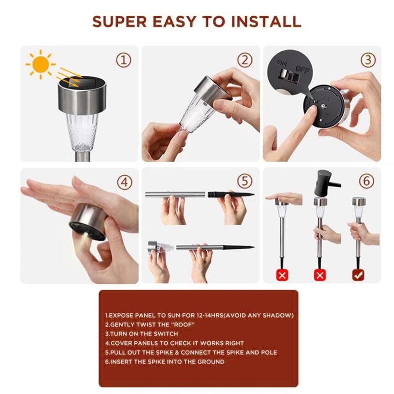 Zewnętrznych dekoracyjnych wodoodpornych i odpornych na odkształcenia lamp solarnych ze stali nierdzewnej - 12 szt.