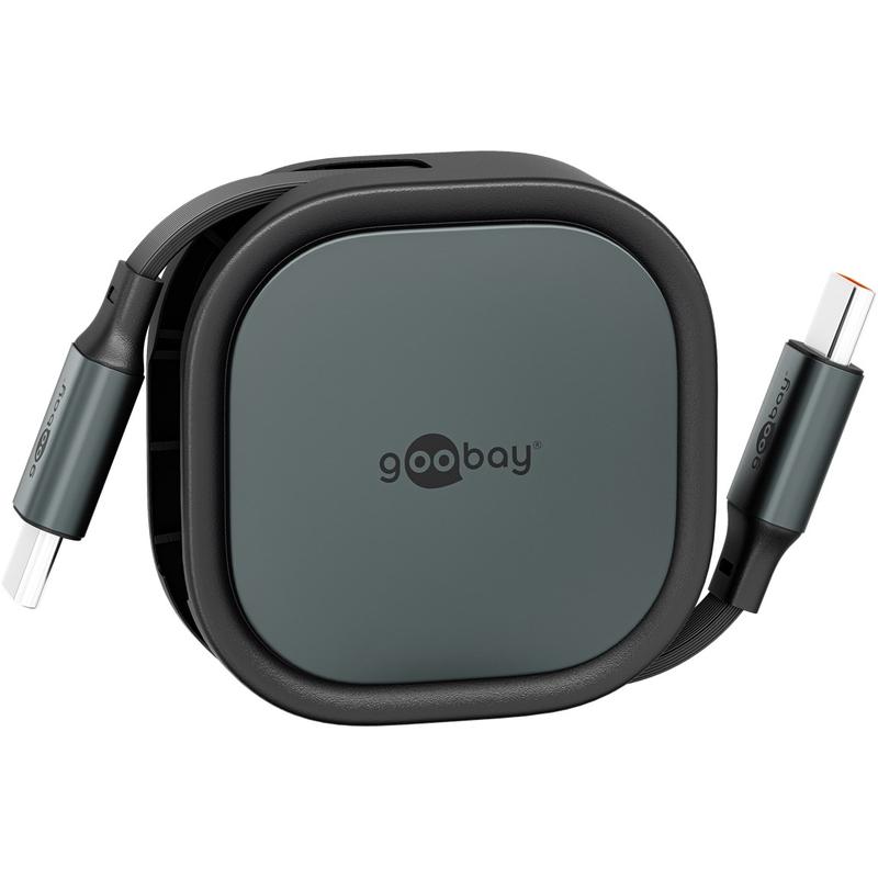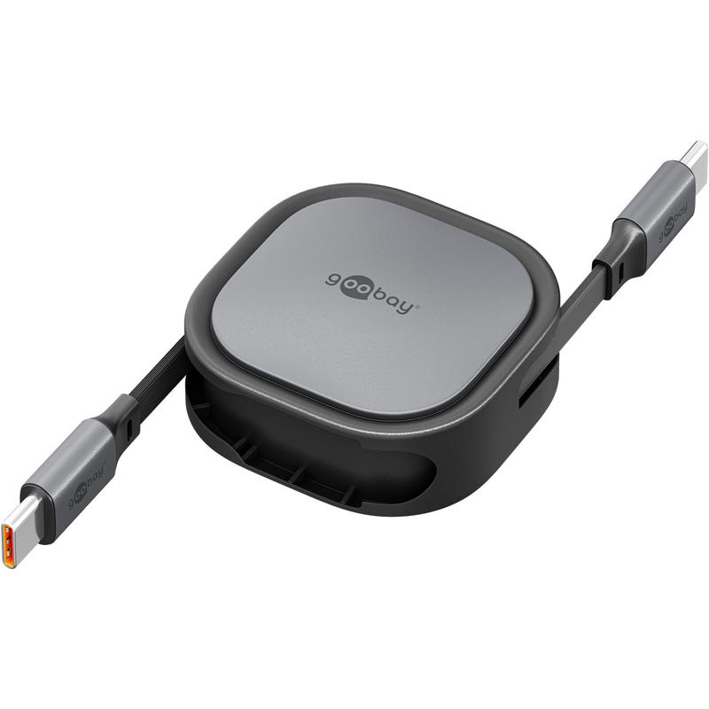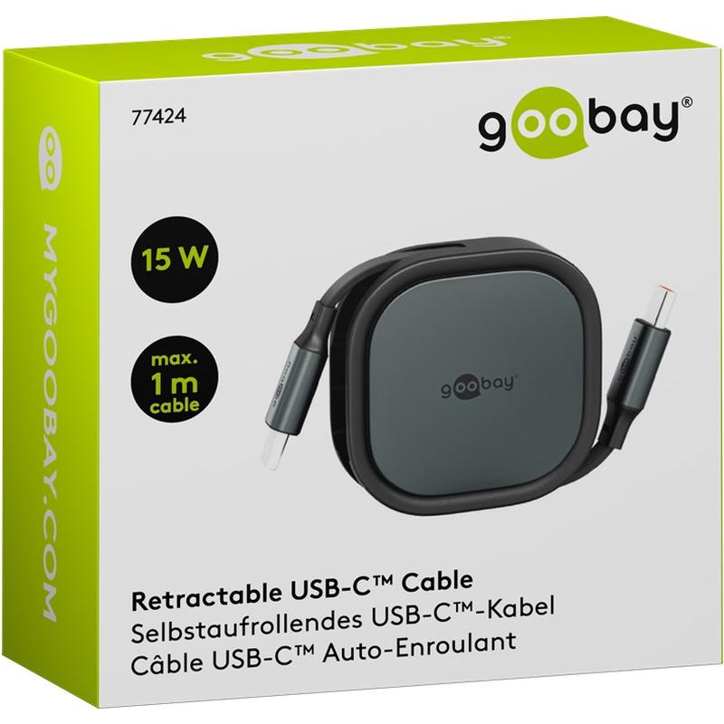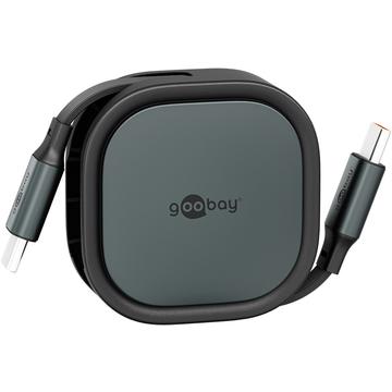 Goobay Chowany kabel USB-C - 1-metrowy płaski kabel ładujący o mocy 15W z mechanizmem automatycznego zwijania